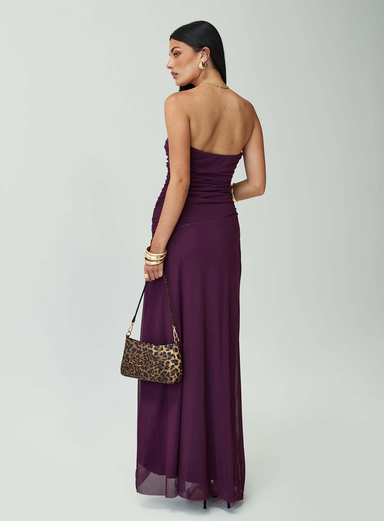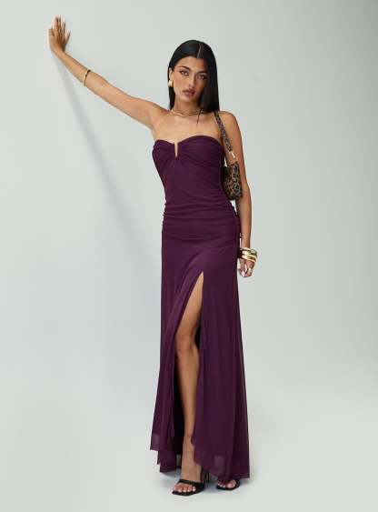 • Silicon strip. buckle detail. ruched. pleated hem. high leg split