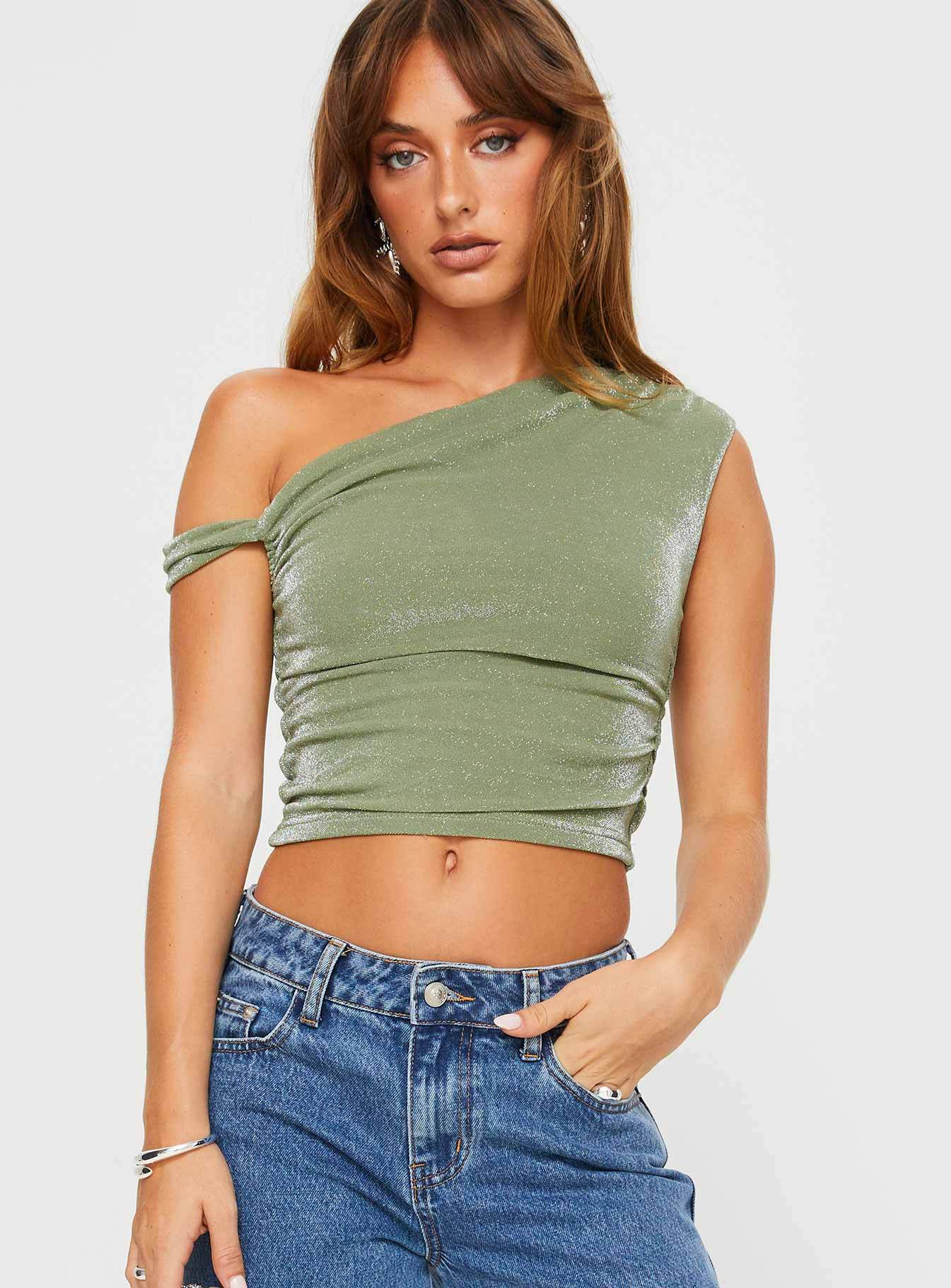 • Glitter one-shoulder top