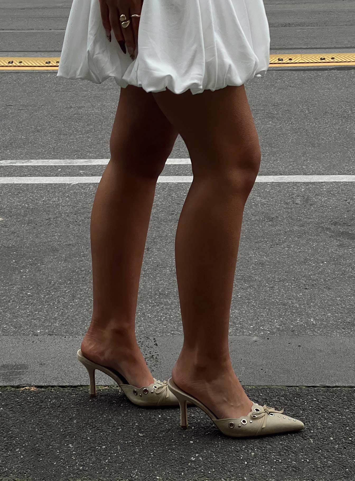 Closed-toe. stud & eyelet detail. silver-toned hardware. bow detail