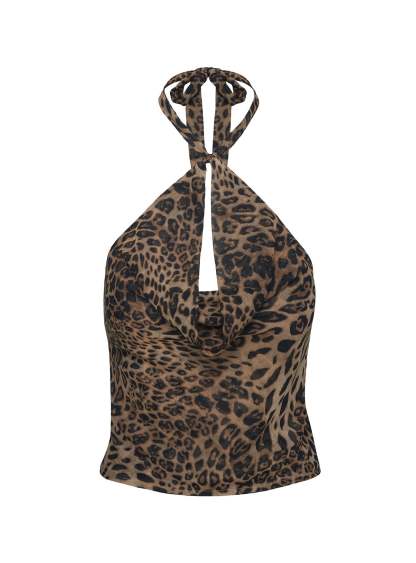 • Twist detail. cowl neckline. adjustable halter straps. low back design