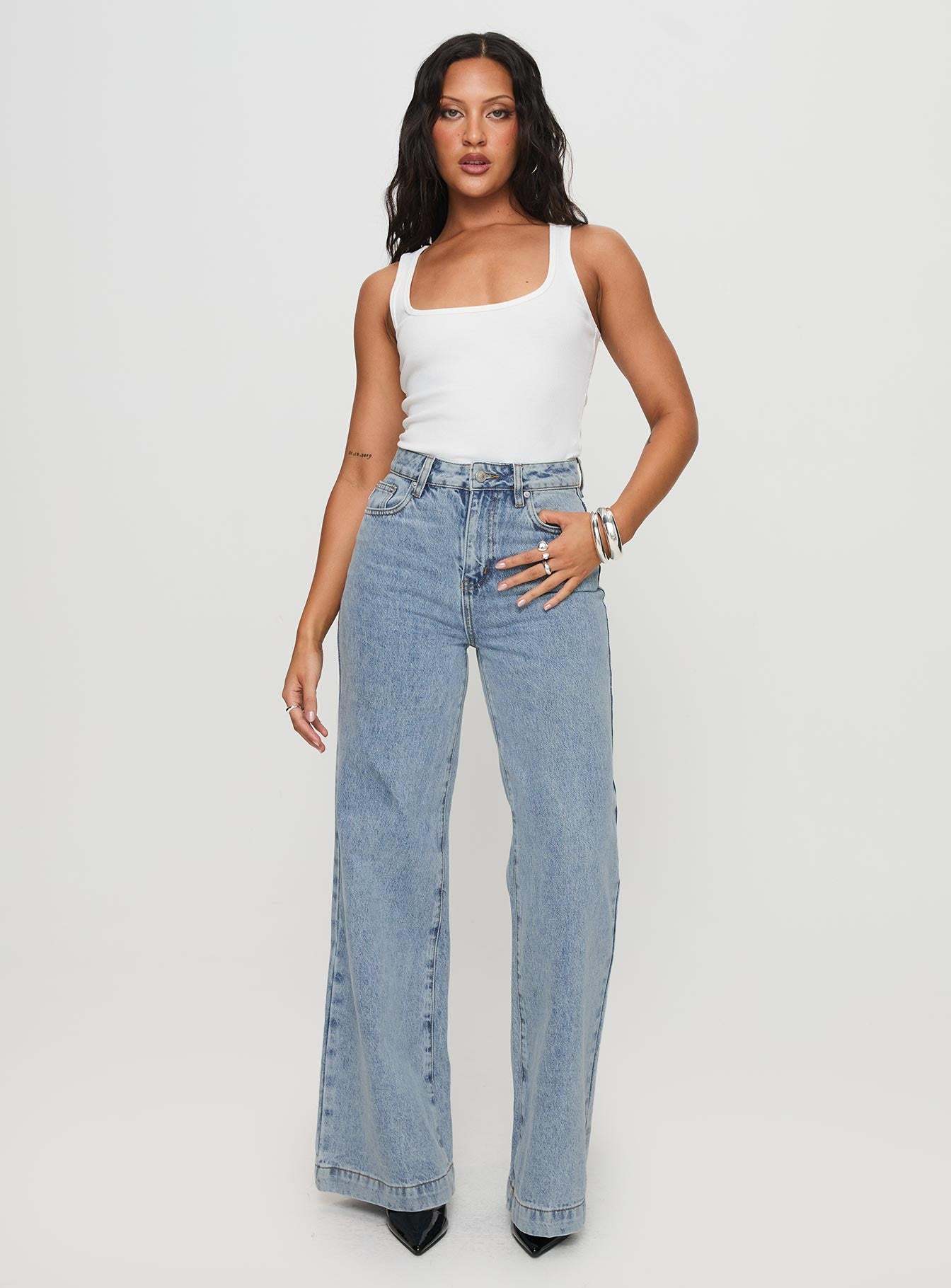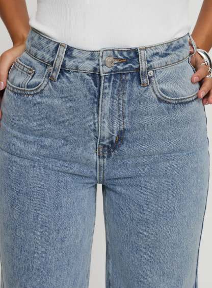Light-washed. belt looped waist. button & invisible zip fastening. classic five pocket design. branded patch at back