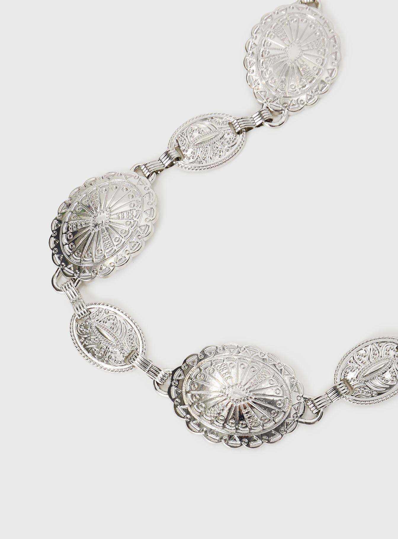 • Silver-toned chain belt