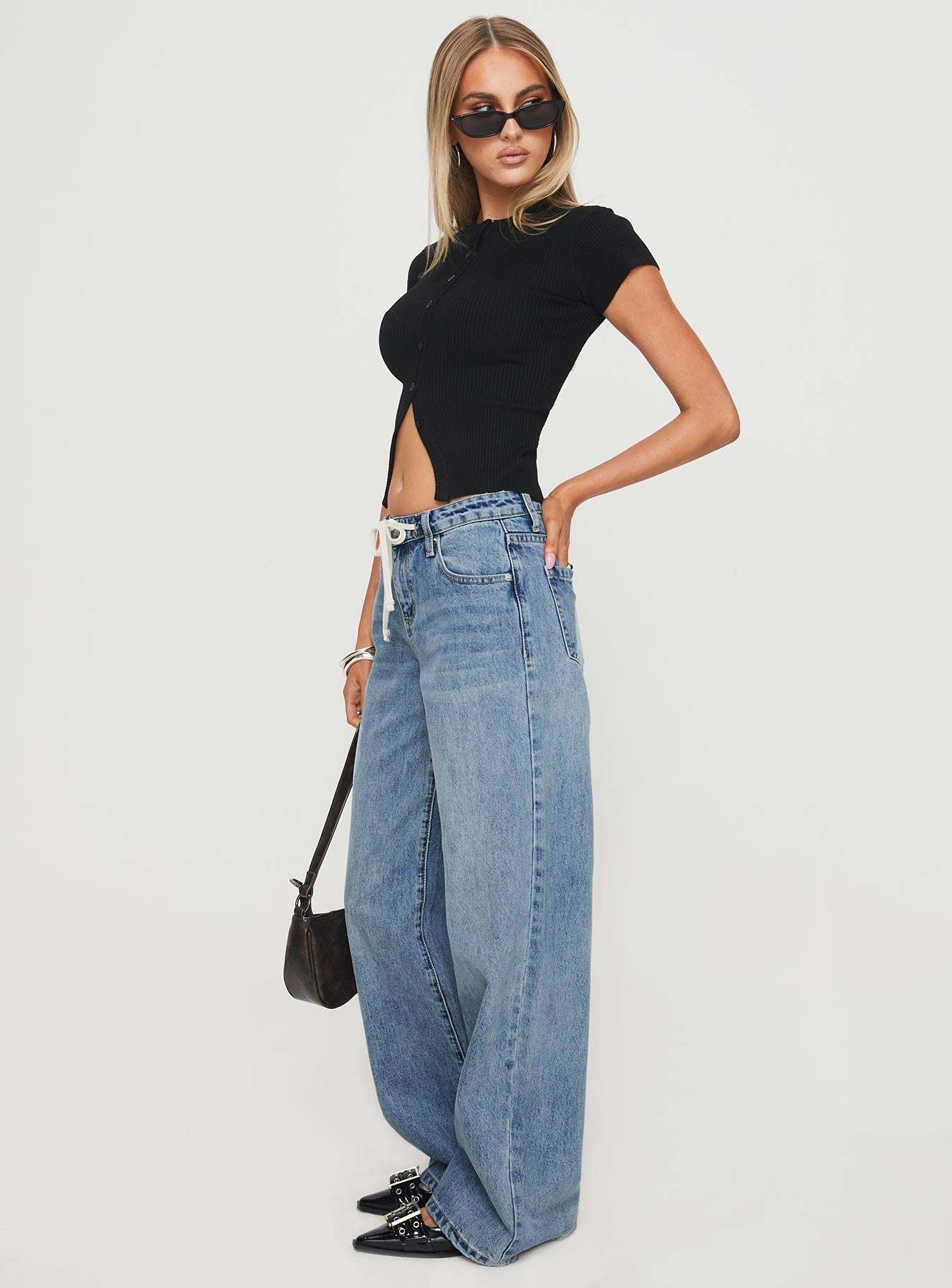 • Slouchy low-rise denim jeans