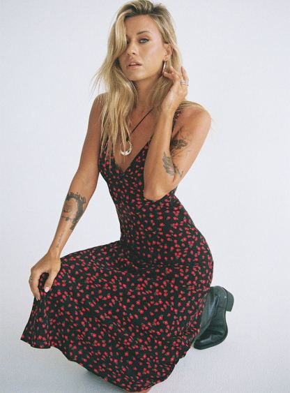 Nellie Maxi Dress Black/Red Floral
