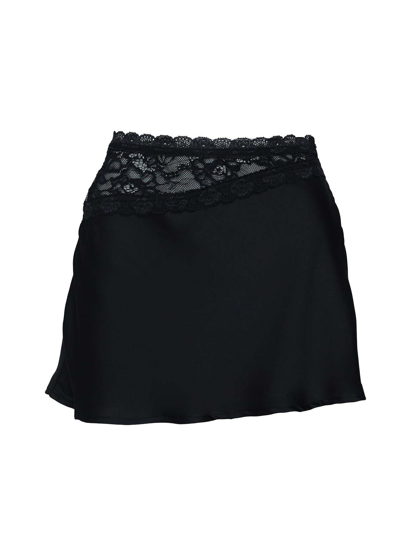 Satin material. invisible zipper on side. side split detail. mid-rise fit