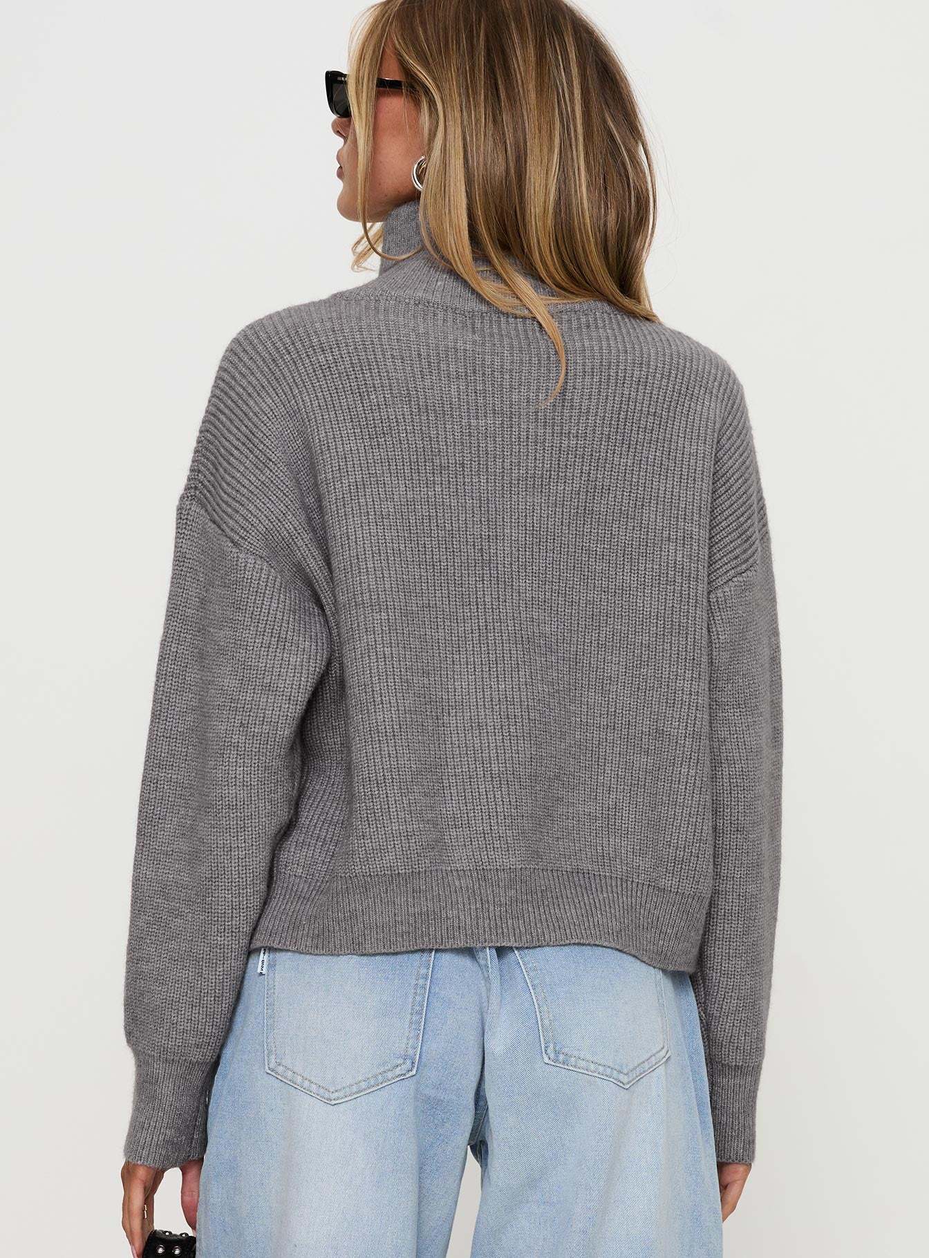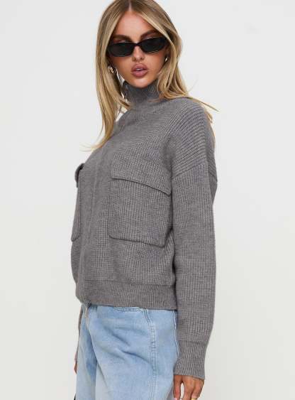 Too Busy Zip Up Sweater Grey