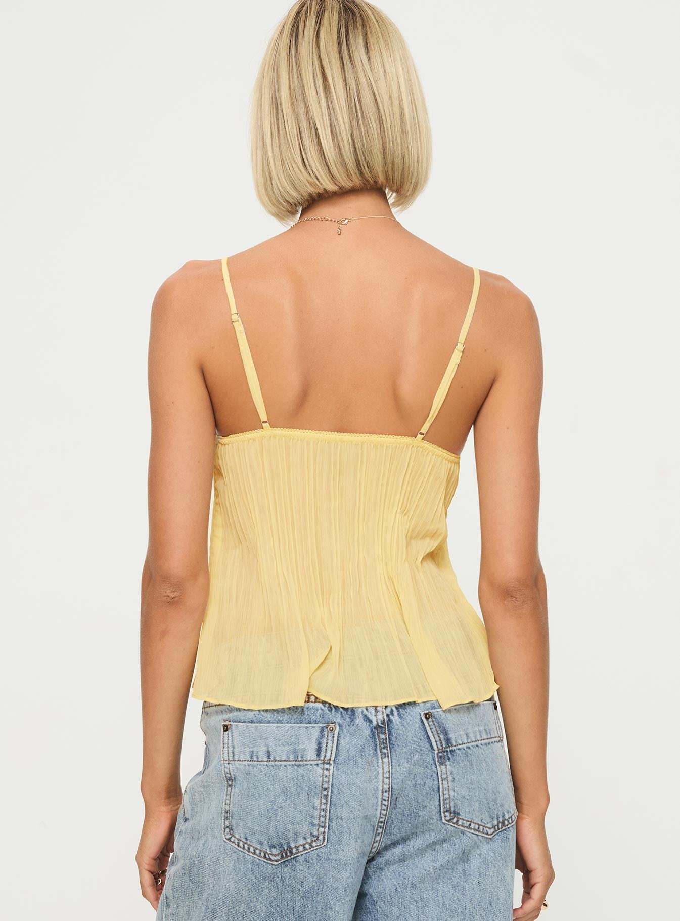 V-neckline. lace bust. bow front detail. adjustable straps. sheer fabric